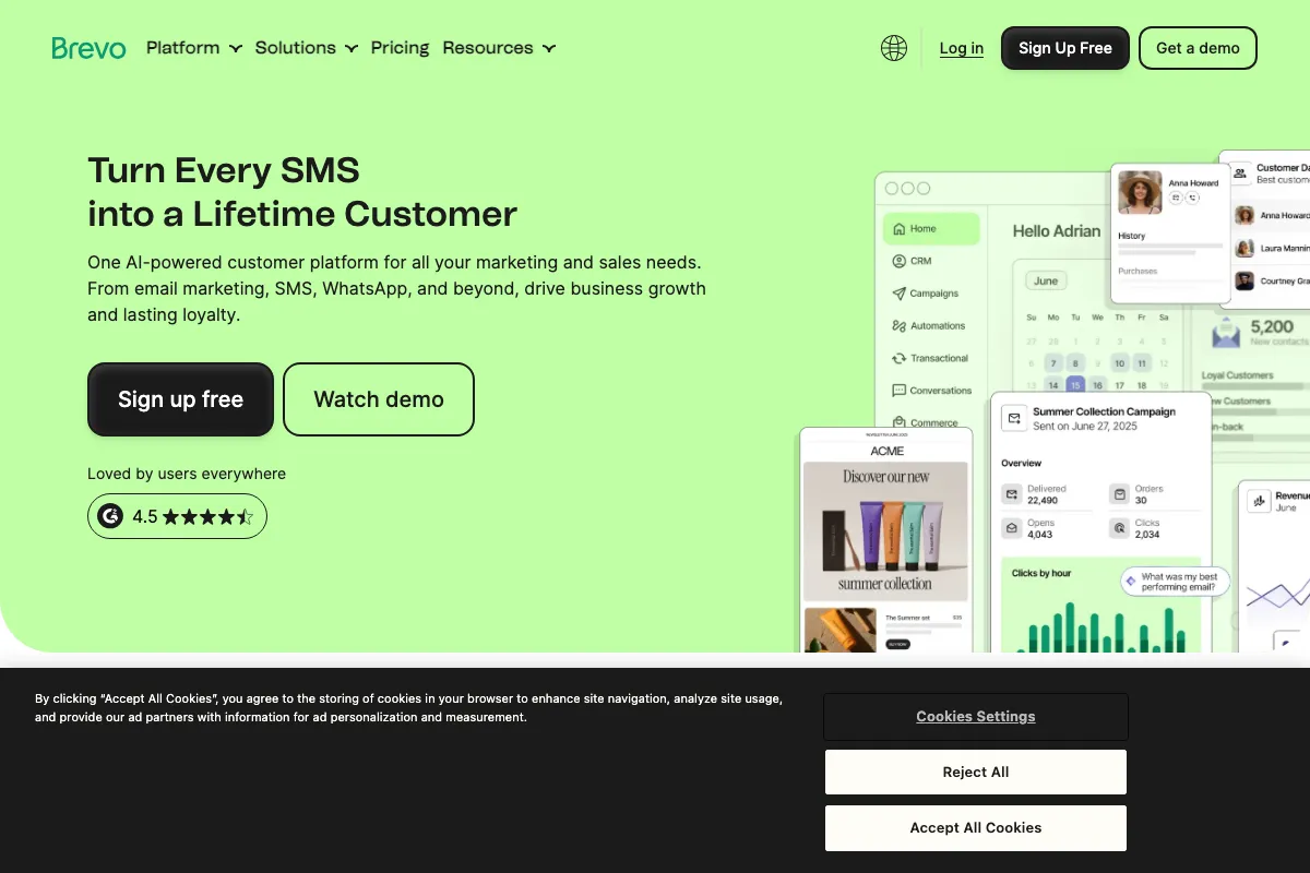 Brevo on monikanavainen markkinointialusta, joka tarjoaa tehokkaat tekoälyagentit kampanjoiden hallintaan, datan analysointiin ja myynnin tehostamiseen.